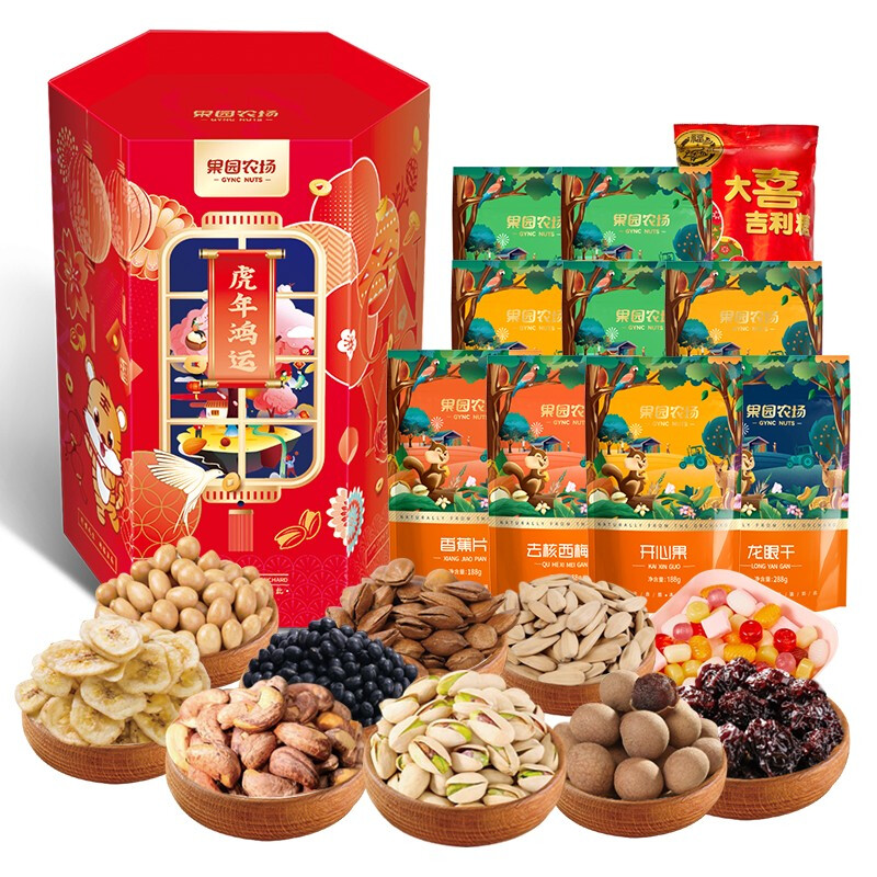 果园农场坚果礼盒干果蜜饯大礼包 招财进宝干果礼盒1190g