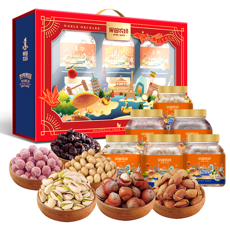 果园农场 坚果年货礼盒 世界果园1195g(罐装)干果大礼包